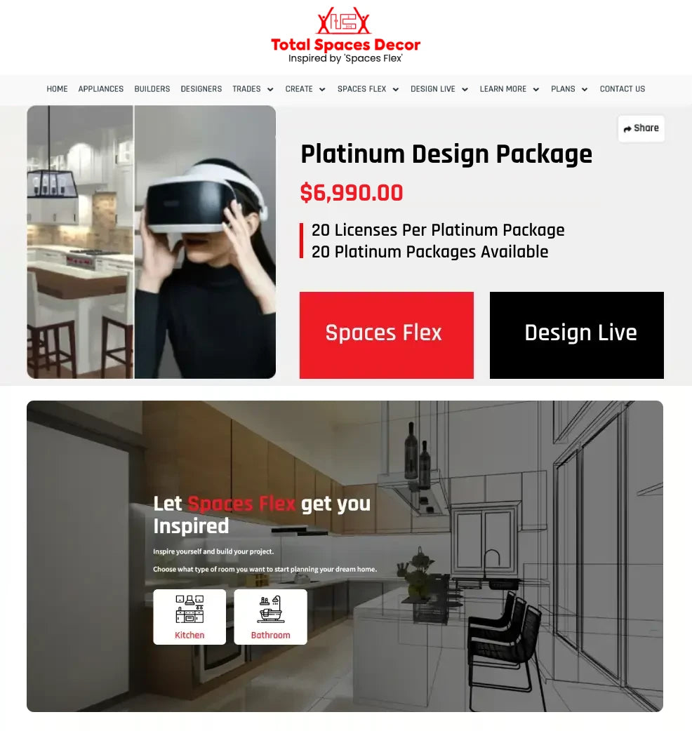 2. Next up is 'Spaces Flex..Inspire'. This kitchen & bath remodeling software captures inspiration anywhere and transforms it into stunning, accurate designs keeping you, the customers, engaged at every stage of their journey. Let's get you started with 'Inspired Design'.