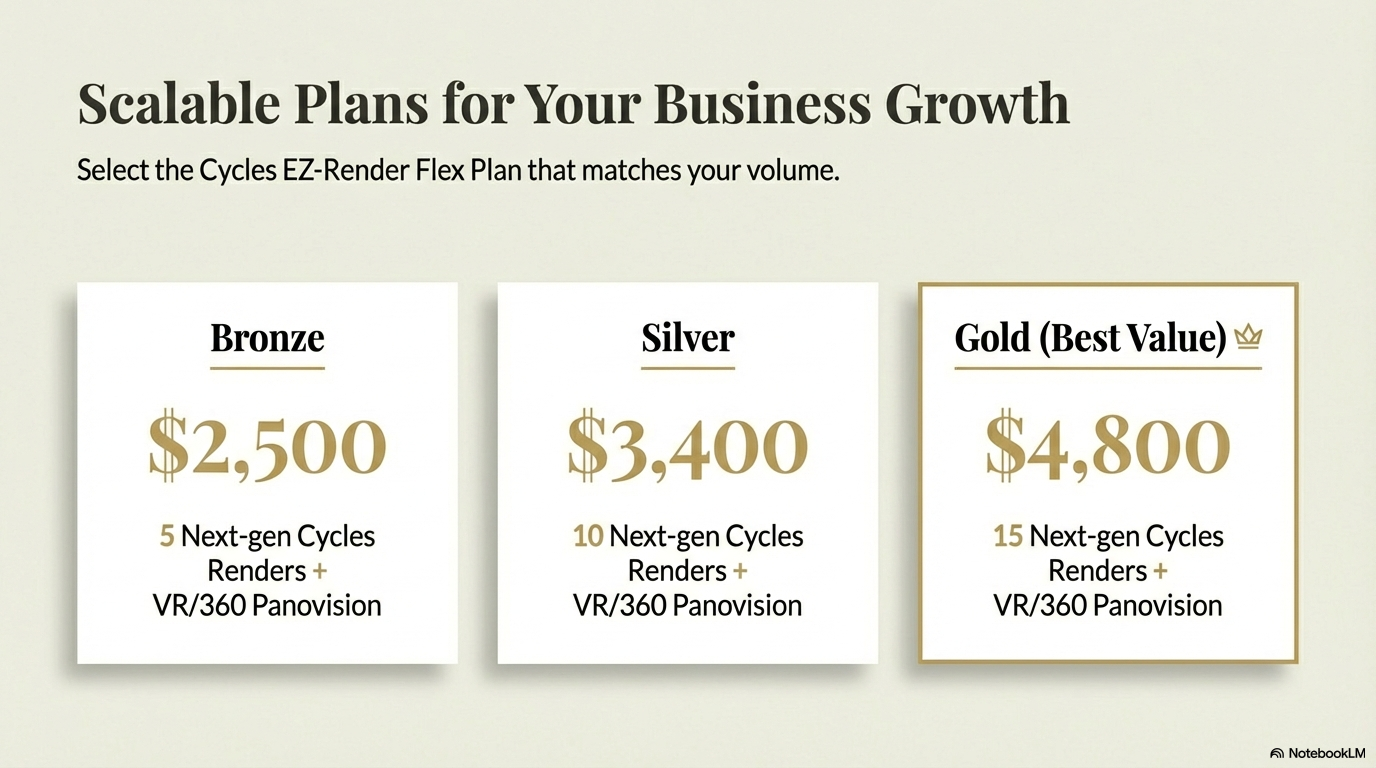 EZ-Renders Cycles Flex 'Bronze Plan' includes: